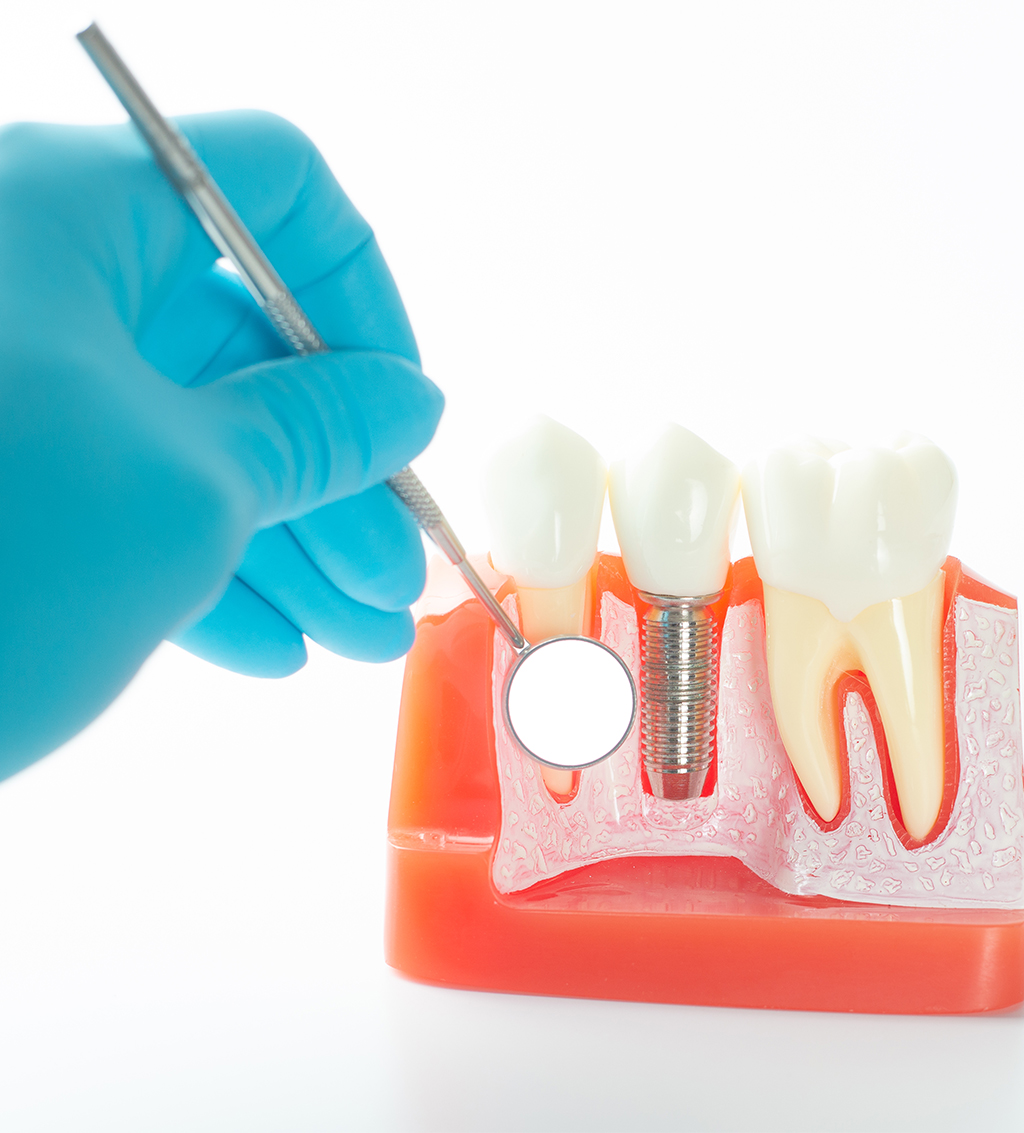 インプラント治療とは、人工物でできた歯根をあごの骨の中に埋め込んで、それを土台として失われた歯およびかみ合わせの再建を行う歯科治療のことです。